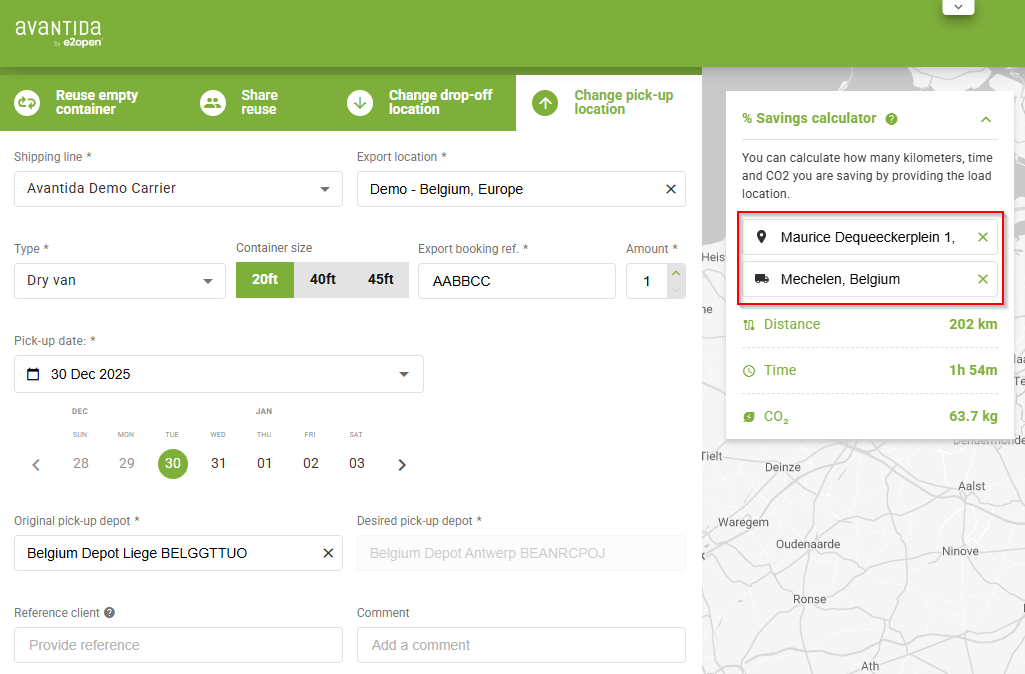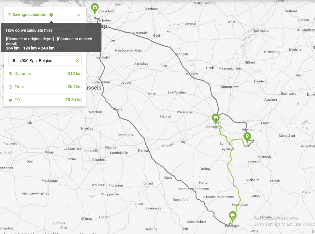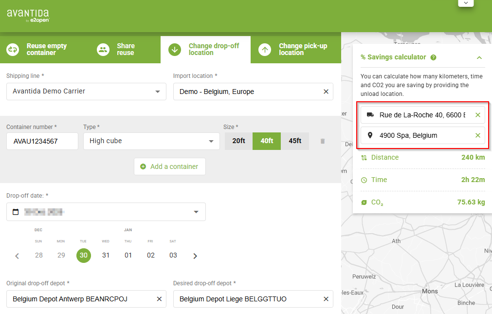 Picking up or dropping off import containers at alternative depots reduces CO₂ emissions and avoids unnecessary kilometers, but it's not easy to calculate what distance or emissions have been avoided. We have some tool that can help you with this exercise.
